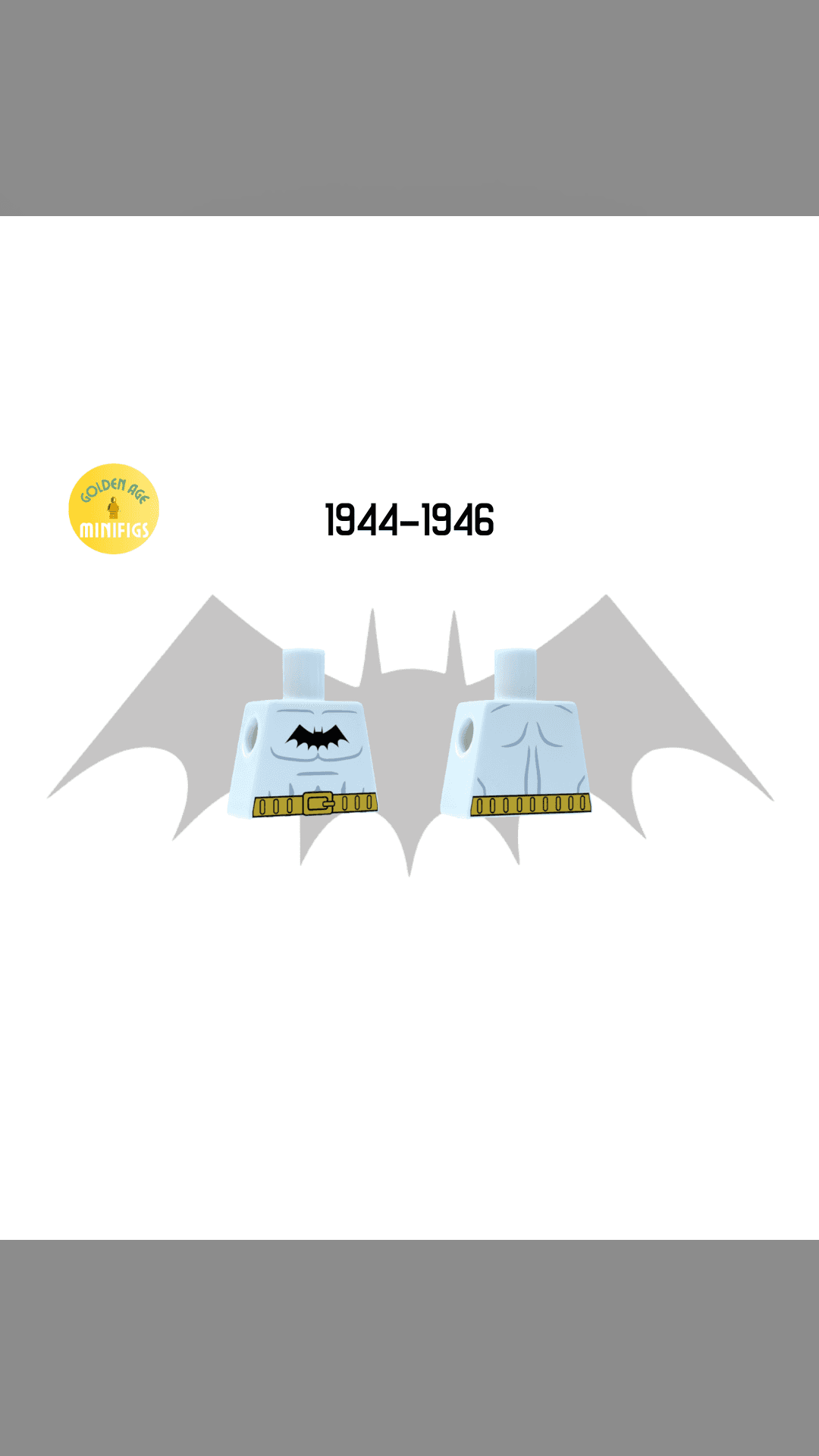 Torso that includes the bat symbol used in Detective Comics and Batman titles from 1944 to 1946.