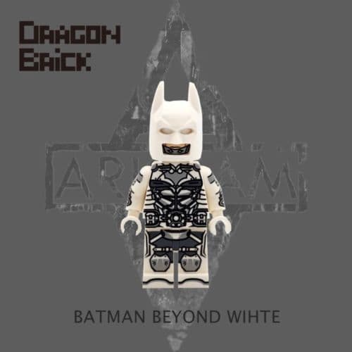 Batman Beyond White Batman (Dragon Brick). Released in 2018 and custom printed limited edition (54 of 200). Batman has custom printed torso, legs, and collectors card. Sold out and no longer available. Protective case and packaging.