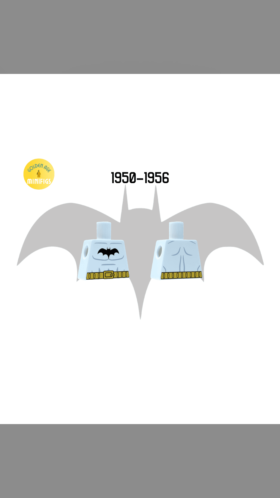 Torso that includes the bat symbol used in Detective Comics and Batman titles from 1950 to 1956.